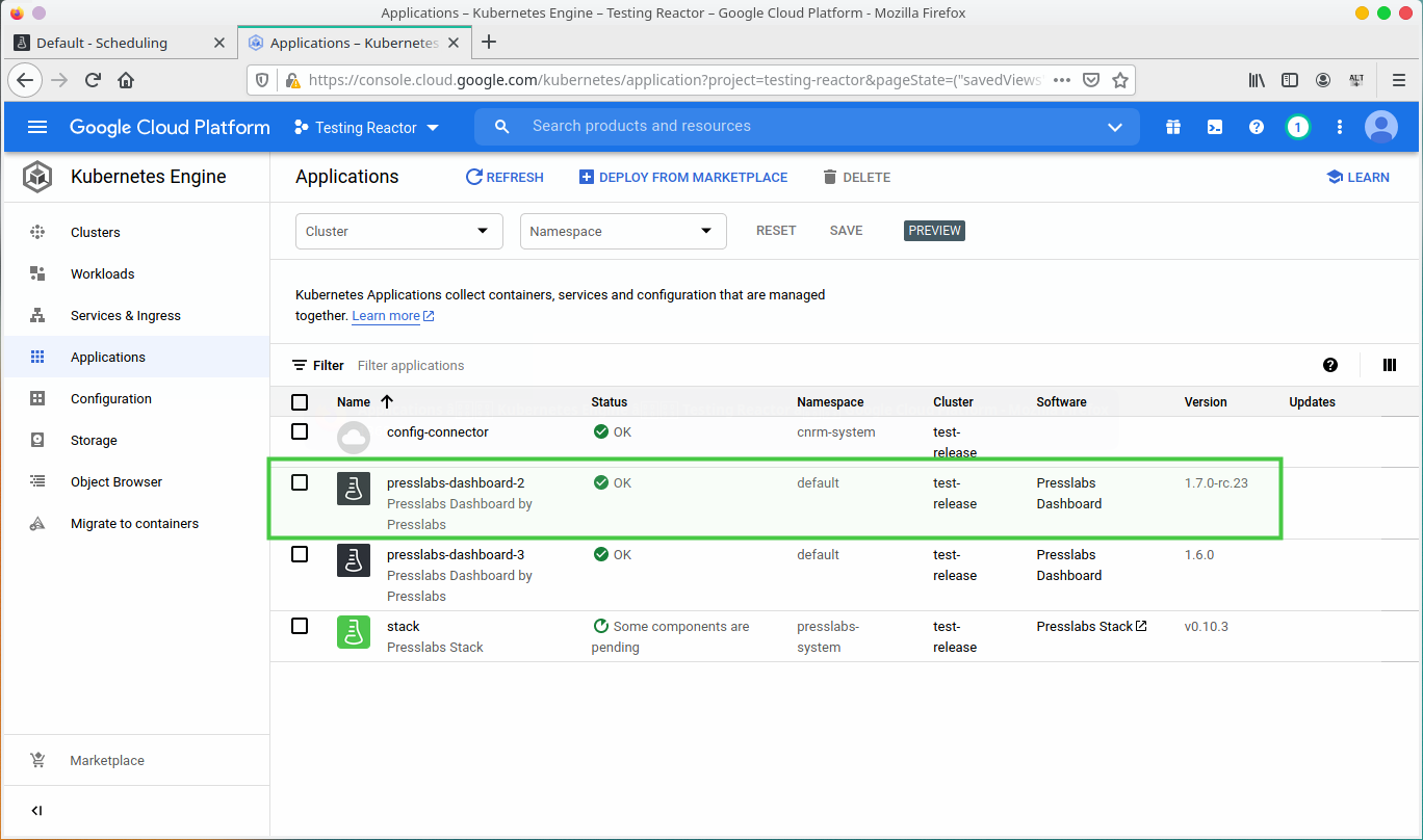 To delete the old Bitpoke App version, go to Kubernetes Engine -> Applications and delete it from here. For example, if you upgrade from version 1.6 to version 1.7, you have to delete the 1.6 version: