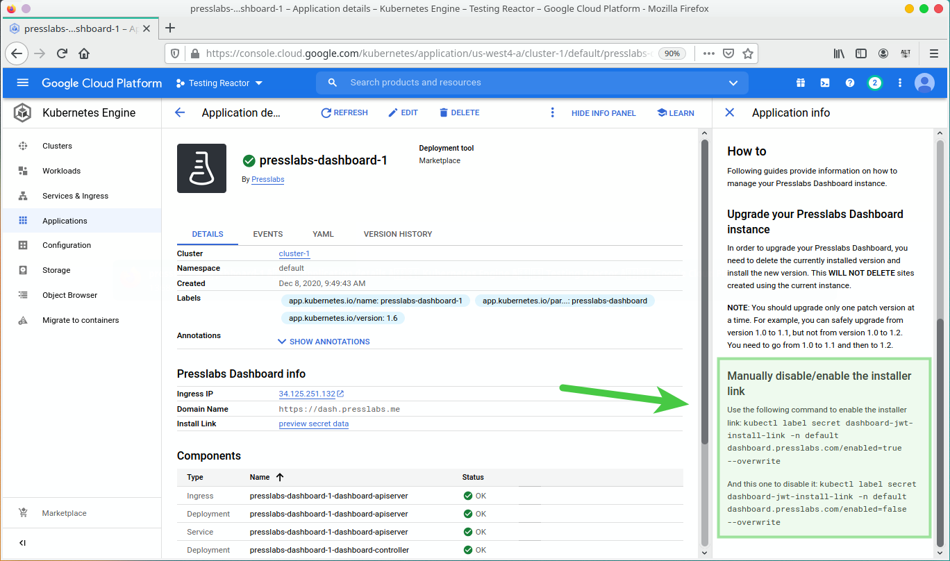 Keep in mind that the installation link is valid until you login for the first time with your Auth0 or Google OAuth account. This is the only case when it is automatically disabled, otherwise the installation link regenerates every 2 hours and you’ll have to go back to the Bitpoke App on GCP and recopy the install link to access the App again.